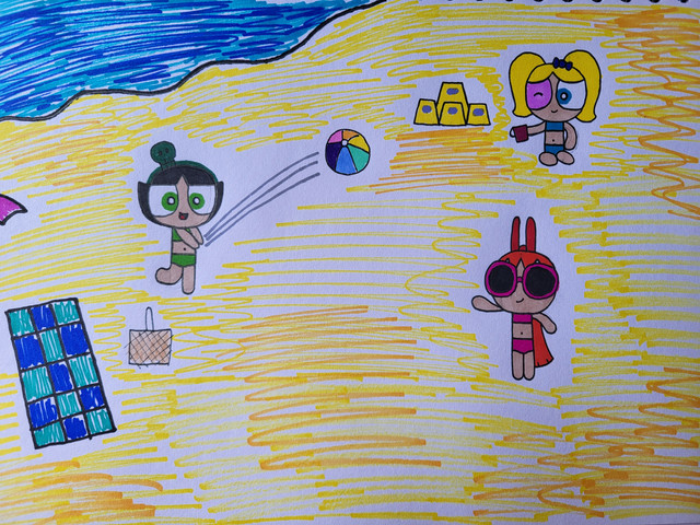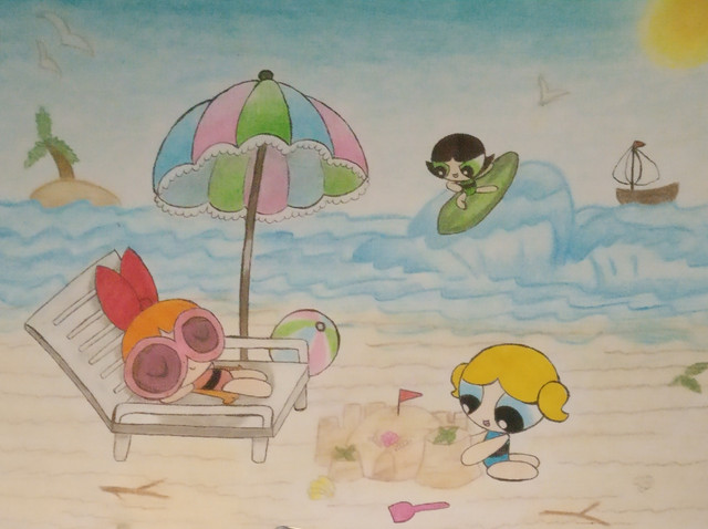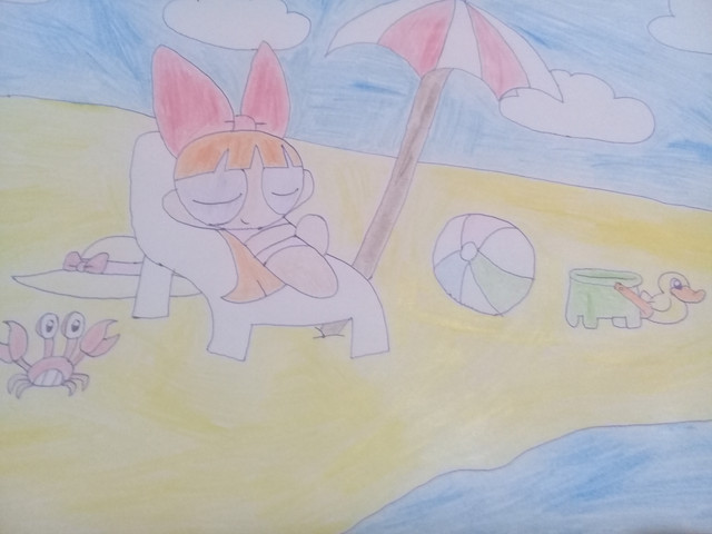 #beach #blossom #cartoon #cartoonnetwork #powerpuffgirls #redhead #superhero #swimsuit #volleyball #90scartoon #traditionalart