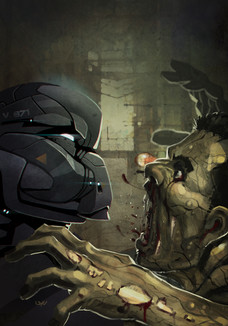 Great image, love the details and posses. Gives you a real sense of action. I really dig the robot designs and the Mike Mignola style Werewolf, I shouldn't really call your wolf that sense it's very original but your work is right up there with Mikes.