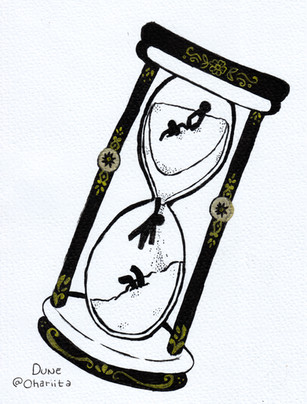 the idea here is that they stop time! omg! giant hourglass! the idea is actually pretty cheesy. i guess it would be unexpected because if ur immortal... time doesnt stop for u. i mean, theyre closing up a huge hourglass, not just their own, u know?