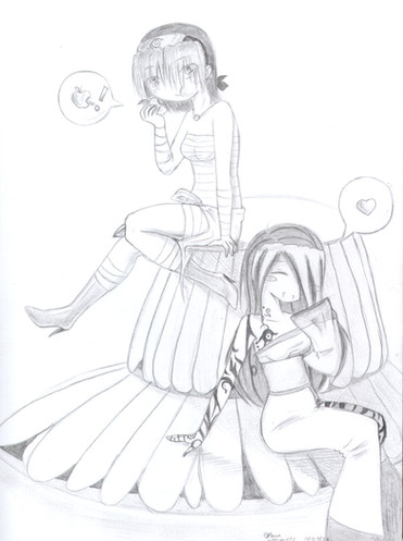 number 4 in my portfolioum.... this sucked. lol. this is Saria and Trey, who r both immortal right now, since theyre married. [Trey cant die until he sees all his relatives die in his dreams as they actually die]. theyre talking about having kids but i dunno.