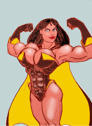 It seems Alex came in contact with the amazing Iczer Formula. The Iczer Formula is a able to change good-hearted girls into ultra-buff, ultra-busty ultra-babes! Just a few drops were enough to for Alex to become Totally Pumped! With her muscles exploding with power and her nipples trying to tear through her jump-suit, Alex feels incredible. Of course, being a generous soul, Alex won't hesitate to proudly show off her new buff bod to her fans. She also won't hesitate to share the wonderful Iczer Formula with Sam and Clover and witness them become Totally Pumped too!