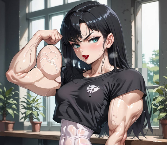 Her shirt strains to contain her expanding breasts.(squeezing air balloon sound effect.)