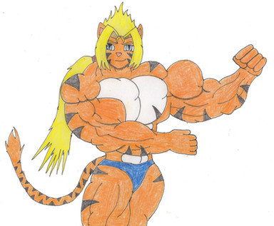 Wow, you actually did a furry character! The only other I can remember was an old picture of John Barrett's Roxikat. I like it. I think there need to be more buff anthropomorphic Pokemon girls in the world.