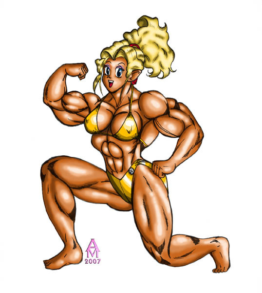 I go so far as to say that a woman that muscular would never have breasts that big