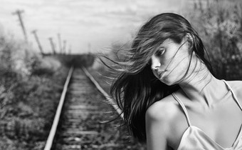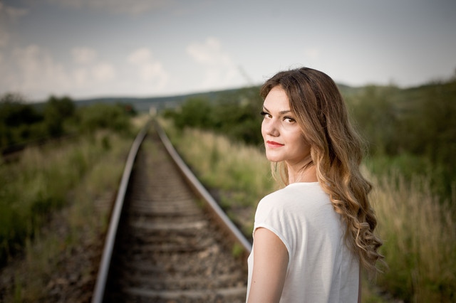 Very nice lighting for this photo, the motion of her hair and the immobility of the tracks.