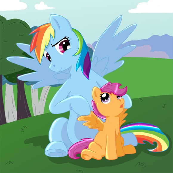 Rainbow Dash and Scootaloo both look amazing here, I like how Scoots looks a bit unsure here...you can't go wrong with Dash as your teacher though