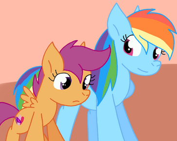 And I totally fell in love! I love the idea of Dash being Scootaloo's adopted big sister since the other Crusaders already have their own.