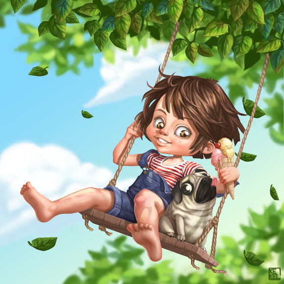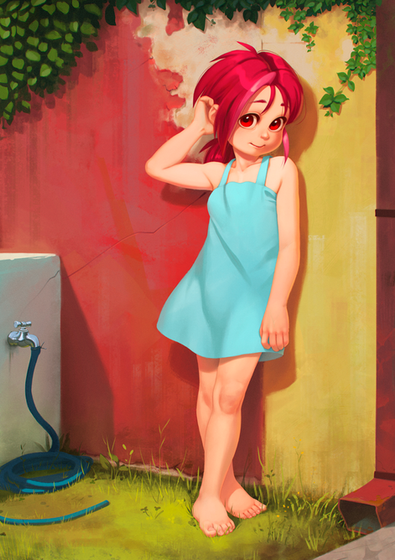 #beach #bikini #dog #gingerhair #painting #redhead #summer