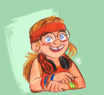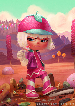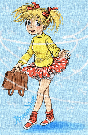 I'm impressed with your style here.Β Nice work.Β Sort of modern day Norman Rockwell only more fun.Β IMO this little gal might simply and lovingly be called Trouble as in Here Comes Trouble.Β Love it!