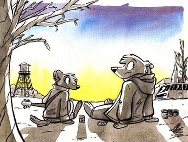 Oof oh my this is absolutely stellar o seriously must say. Even though there's not a lot of colour to this I honestly love it it's pretty sweet and has a cool feel and look to it. Plus the grass and trees are nicely done as well as the the characters. So ya nice job!