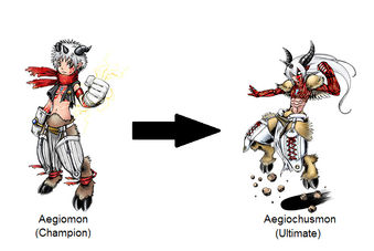 Actually Aegiomon is already an Adult/Champion Digimon, even if he does not look like it due to his babyface.