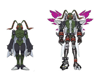 So this is my fanfic Digivoluton line for Aegiomon.His Perfect Level is Aegiochusmon as normal. I wanted the exposed skin and muscle part of Aeiochusmon to be the dominant feature and carry over to his Ultimate form so I thought Velgemon would be a good fit.
