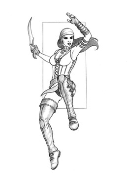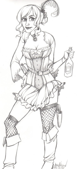 Guys look I made a thing!Sometimes my friends ask me to dray some really weird shit, this being one of them. Basically she wants to make a video game and this is one of the "characters", a one hooked pirate hooker. Obviously. (also by make, I mean talk, draw and dream about maybe starting possibly)