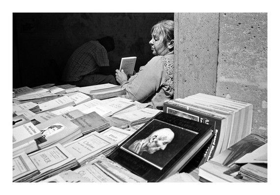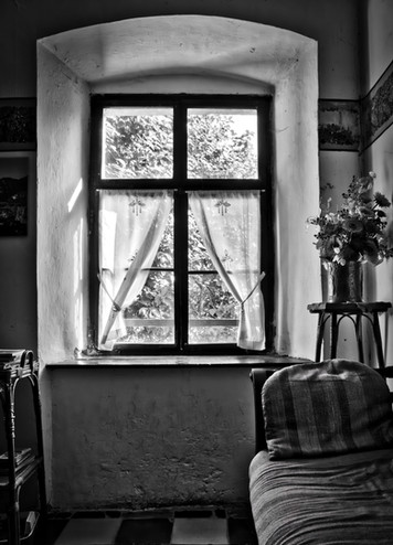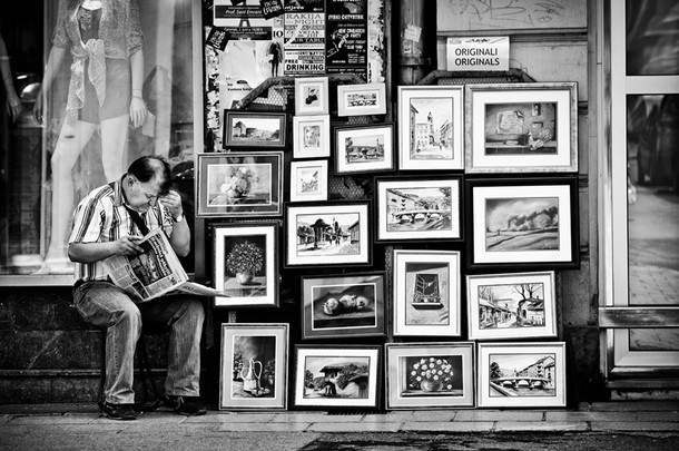I had to laugh when I looked at this image, as I was sat at my computer desk with my left forearm propping up my face like the two ladies in this clever and well spotted shot! lol! Β The woman at the window is part of the gallery of exhibits and I love the way she is deeply reflecting, perhaps on what she has seen! Β Wonderful! Β Congratulations!