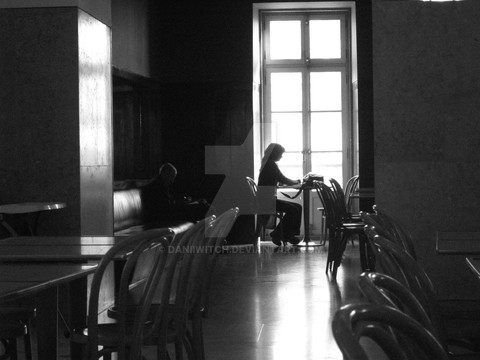 i can't help but imagine she must have something heavy hanging over her, if she's not interested in immersing herself in the gallery work, and her dark cloths and posture help reflect that.
