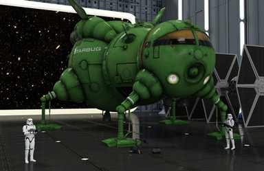 Starbug 1 work-in-progress. The JMC shuttle craft from the UK TV show Red Dwarf. Original model made in Sketchup then imported into 3D Studio Max. for UV mapping. Texture maps made in Photoshop. Here I am aiming to reproduce the original studio model with only a few details added for interest and to fill in where I don't have good reference pictures. Mostly done now - just the tweaks that I will no doubt notice need doing at some point. Get a reduced detail version (I had to drop texture map size & split it into two files just to get under the file size limit) here [link]Related content