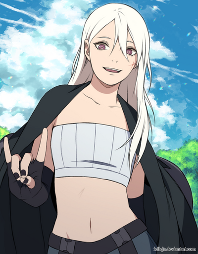 I like this idk. She's obviously an examiner. She works with Kotetsu and Izumo and they like to tease her for being young and short. She's embarrassed by it.