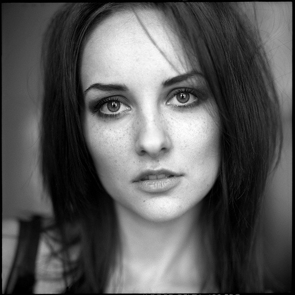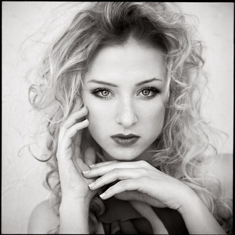 I especially like the position of her lips the way they are partially open, only slightly; the bright white background contrasts very well ^_^.