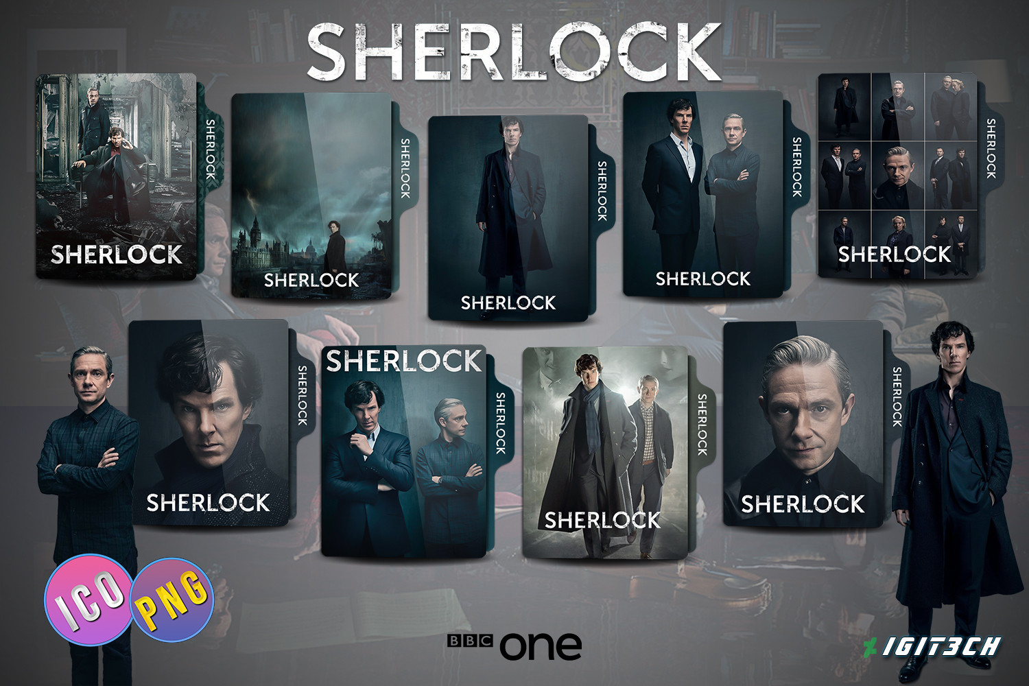 9 folder icons for "Sherlock" | The BBC One (UK) series with Benedict Cumberbatch and Martin FreemanMade with Photoshop || PNG :512x512 | ICO :256x256