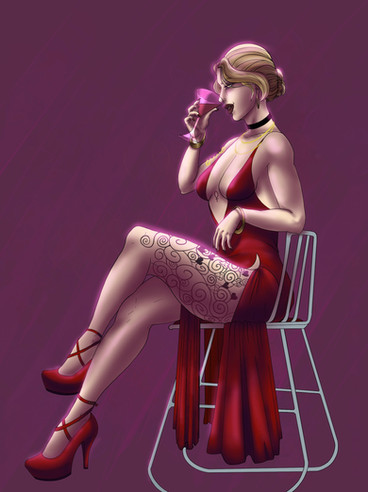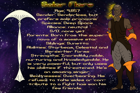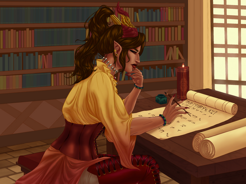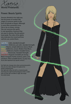So halfway through adding some half-assed shading to her gems I decided I didn't want to shade the rest of her because I realized that would obscure her colors and some details so herre she is! She's a mage fighter, relying heavily on her telekinetic abilities, skirting around the edge of a battlefield and bringing in grand attacks from a safe distance. I kinda made her shoes and neck plate have an Egyptian-esque feel to them, because I absolutely love ancient Egyptian history, mythology, and culture. Anyways, she is rather short, especially for her breed, so I think something must have caused her to have a stunted growth but as for what that is yet I'm not sure. Her eyes have no pupils as a direct result of her telekinetic abilities, and though the color is also unusual for her breed, she has no issues with her sight, depth perception, or anything of the like. She also has the ability to mind control beings of lesser intelligence, namely smaller animals and underdeveloped breeds.Her human form weighs 133 lbs. and is 5'2"