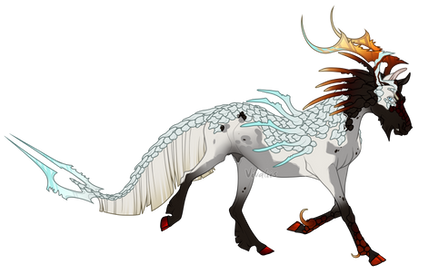 Phenotype: Grey on Black Tobiano/ Special markings, Jadeit Veins, Gold, Soft Colors, Scales, Glittery + Dapples