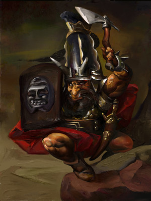 Wow! Dwarves have always been my favorite fantasy race/species, and I think you've managed to capture just about everything about Dwarves, that I love so much. The gold/bronze fits the character perfectly too . Really nice job man.