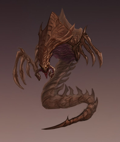 I think this was the original view on zerg, like a mutated xenomorped spleen with claws or something. It became more warcraft-like with time.