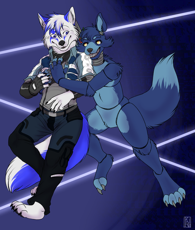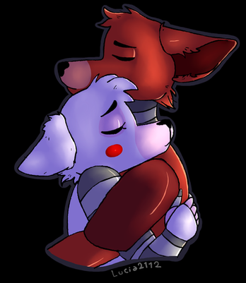 #animatronic #couple #cute #hug #oc #orange #otp #purple #ship #squirrel #white #wolf #fnaf