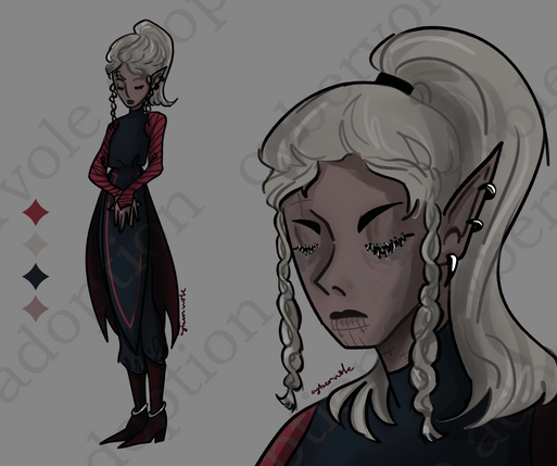 #characterdesign #adoptable #adoptablesopen #adoptableauction #referencesheet #dnd #adoptables #cartooncharacter #character #characterillustration #charactersheet #commission #conceptart #dndcharacter #elvenfantasy #elves #fullbody #gothic #gothicfantasy #gothicgirl #vampire #vampiregirl #elffantasy #dnddungeonsanddragons #adoptadoptable #adoptauction #dndadoptables