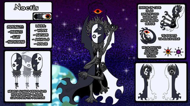 Eclipse is a bit of a mystery - they just sort of appeared out of nowhere and immediately began travelling around the world searching for adventure. There's no point in asking them where they came from, either - they'll just say they're from outer space. They're very child-like and appear to be extremely fascinated (and distracted) by anything that catches their eye. They have little interest for money or treasures, though - what they value most is their weapons. Eclipse has a large arsenal of melee weapons that they use to rid the world of evil and monsters. But their skittish personality and natural instincts sometimes causes them to attack innocent creatures that mean no harm. Nonetheless, they always keep a positive and happy-go-lucky attitude that is impossible to break, but it seems like a solar eclipse flicks some sort of switch in them that turns them into something else, something much more sinister...