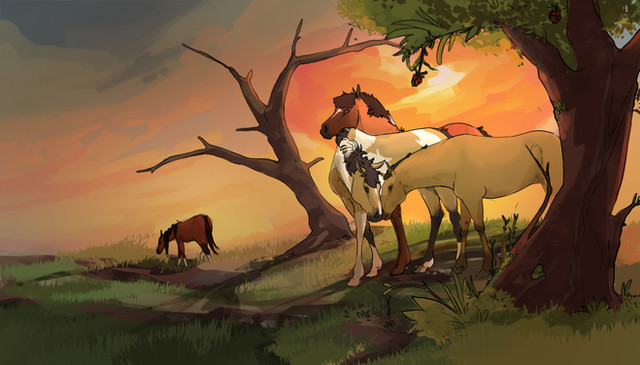 As the sun raised on him one more time and one more day started, Simon remembered his home herd that he had left two years ago now. It had been a bit of a rough goodbye, but the young stallion was excited and ready to take on the whole world at the time.