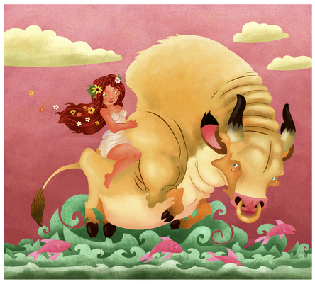Wow, that looks much like a story of Greek mythology that explain where the name comes from continental Europe!With the white bull and girl!