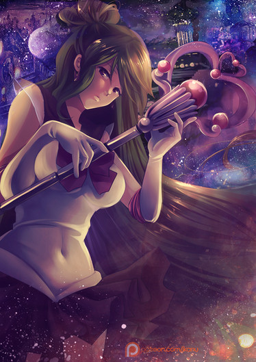 You improved!! :3 I like her face and especially her hair flowing =w= You can work so well with dynamic. And of course your background. As you know I adore your backgrounds <33