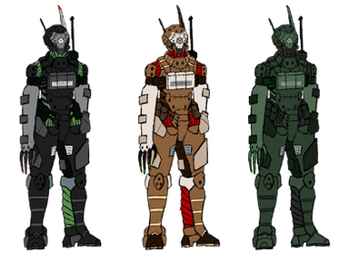 Thank you, I really thought that to make them seem believable and still be function-able soldiers, they would need both soft armor for more maneuverability, and pockets to hold their equipment. And I'm definitely happy with keeping the original faceplate, and wanted the faceplate color to be included in other parts of the armor plating, and I think I choose the right parts to color so the white isn't too over powering in the design.