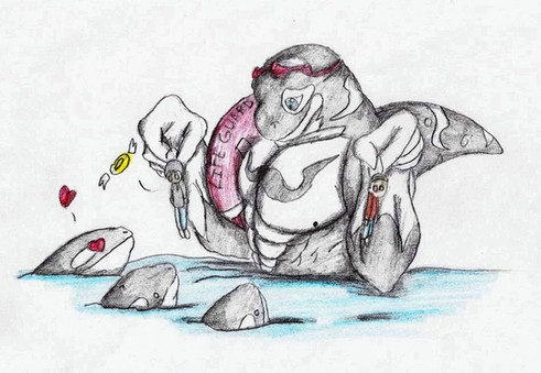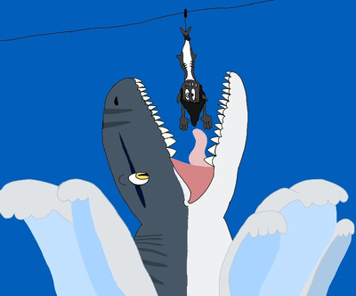 I love this pic! It's so bright and playful, you get the sense that nothing is wrong, even though there's a whale swallowing a man. Well done!