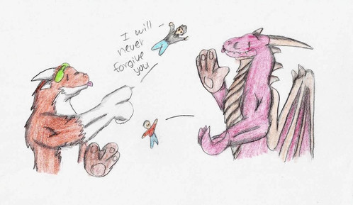 Big Dragon Wrestler Pounce, some would call it a take down. Either way Emerson gets to show off how many pushups he can do over me while I uh...make sure his arms don't get tired. Friends help each other out, after this we can go grab some protein. Dragon's need to eat after all! Emerson says it best: "Rawr."