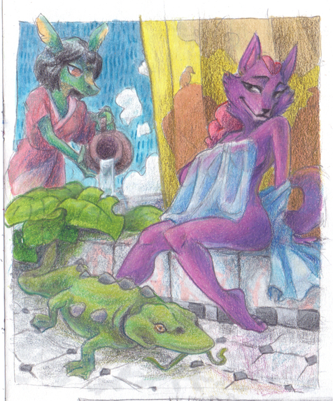 #coloured #originalcharacter #anthro #furry #genet #ice #pencils #suggestive #traditional #traditionalart #funnyhilarious