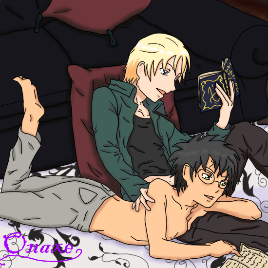 Wow. I love their positions. It's totally hot. The only thing I would suggest cheanging if you were going to would be harry's facial expression. I know that the part of his eye we see is the eyelid, but it took me a little while to figure that out. At first glance it looked like his eye was just white and he was looking up. Otherwise, I love.