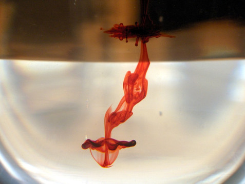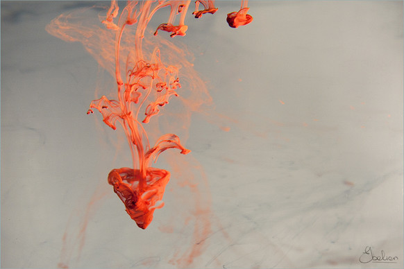 red paint splashed very carefully in salt water ... i thought it looks more like a mushroom