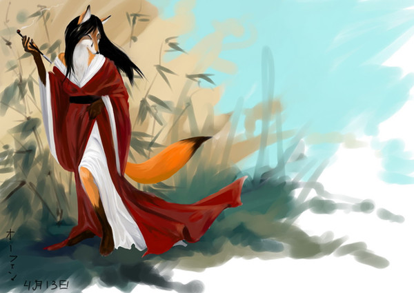 Lovely! I love Kitsune stories. Nice work on the clothing as well.
