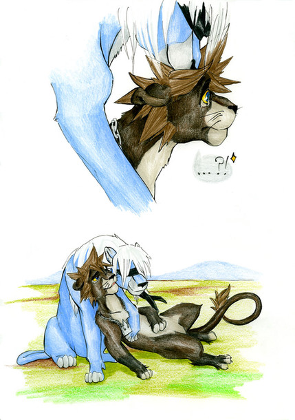 Cx LOL Roxy is just too darn cute, in both parts but it really looks like he likes lion Riku more than human xDD <3 You're style meshes really nicely with the TLK stuff, congrats! I love your animals