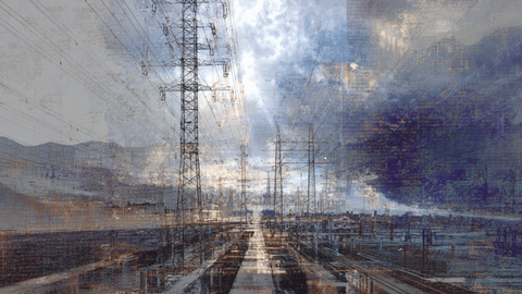 My guess: the tower thing on the right side is drawn, and then gradients and lights and the fancy editing is done through the computer?