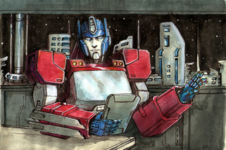 An expressionless face appeared on the view-screen. “Optimus Prime,” the face intoned.