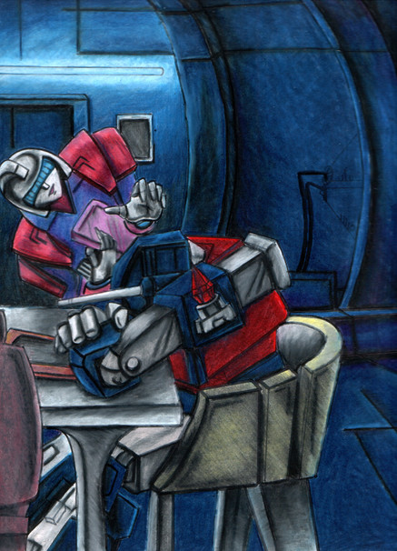 Magnus grunted assent and stomped towards Prime’s office. Rodimus grimaced while his mate cussed into his mind. Magnus had learned a lot about walking quietly from her, and when he first stood up after being changed he had actually been doing pretty well. Now though he was worried and the “tromp of doom” reverberated down the halls of Metroplex for the first time in almost a year. Autobots around the base shuddered in fear before they even identified the noise.