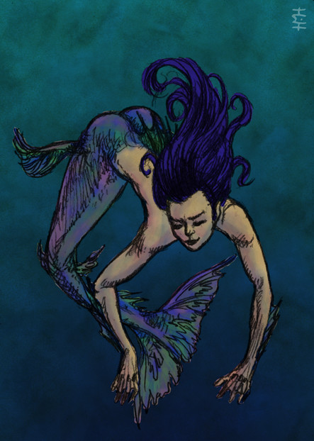 Thanks! I think I was bored when I drew her - its been a few years. You know that floating feeling you get when you are trying to stay awake but you're drifting off anyway...? I often come up with mermaids and fish in that state.