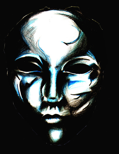 I LOVE the lines and contours here. I'd bet it'd be an interesting mask to sculpt; even if it's not wearable. (can I use that word?) The mood this portrays makes me think of Dead Can Dance; the somber side of the soul.