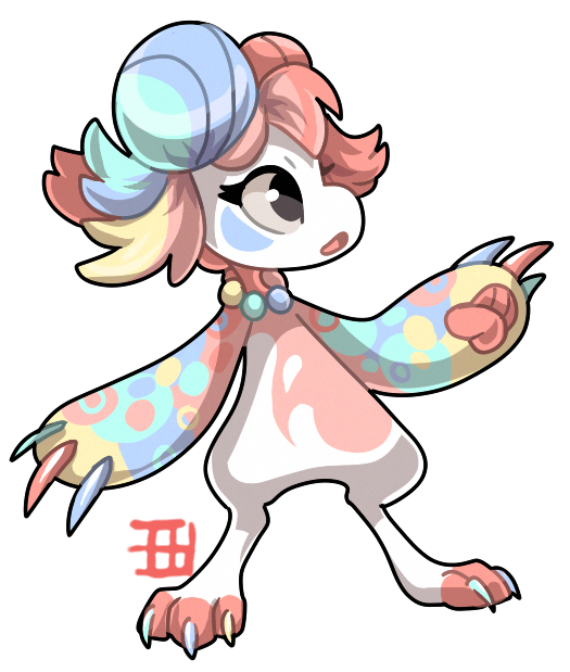 Finally designed a Maze. She lost her tail in an accident that also gave her some nasty facial scars, but she hasn't let that stop her modeling career. (Of course they announced that you can now remove Maze's ugly green markings with a dye potion right after I had finished designing her to cover them all up, orz)I don't know what the rules are RE having other people draw your Maze or Haze for the new masterlist once it's implemented, but if it's allowed and anyone wants to commission me to draw theirs (or even if you just want an unofficial rebase for funsies), hmu
