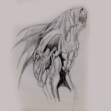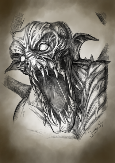 Sketches & Wips: Pencil sketch enhanced in Photoshop. Creature/ Demon with a rather large mouth full of spiked teeth, definitely not something I would want to run into on a dark night all alone.