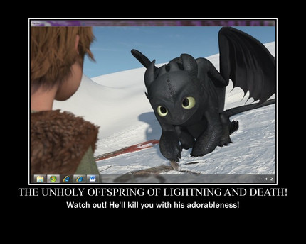 *Sees caption and notices how closely hiccup's face is to Toothless' eyes and reads the caption 'promise'* "Wow this is going to say something deep and inspirational..." *Reads next line, and proceeds to laugh uncontrollably* Thank you for the laugh