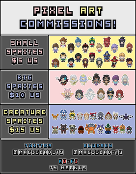 Note: Animated commissions are not the cost of the character sprite multiplied by the number of frames. (Often additional frames are as low as $1)